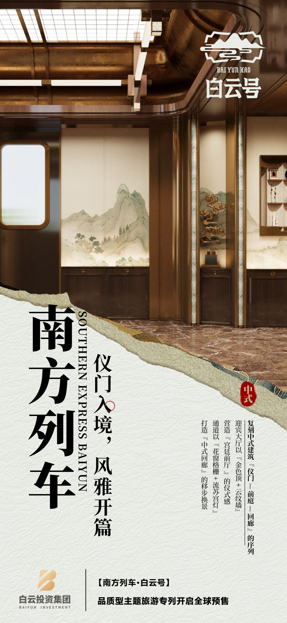 由白云区文化广电旅游体育局牵头引进,白云投资集团匠心打造,联合广州南方列车国际旅行社有限公司独家运营——大湾区首列高端文旅专列“南方列车・白云号”,已正式面向全球开启双线预售。